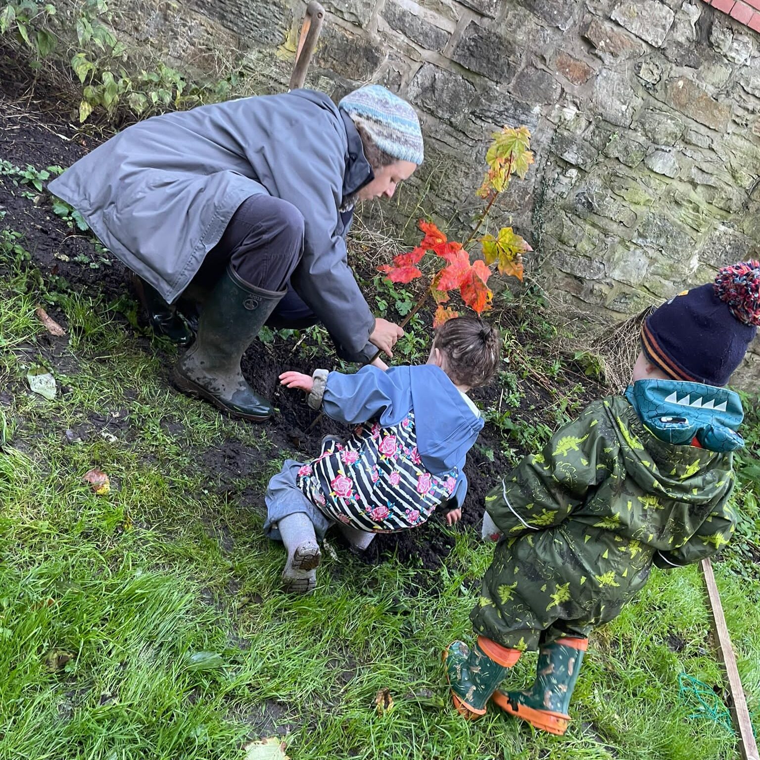 4. Planting a tree with toddlers at a Little Saplings session within a Burnley park