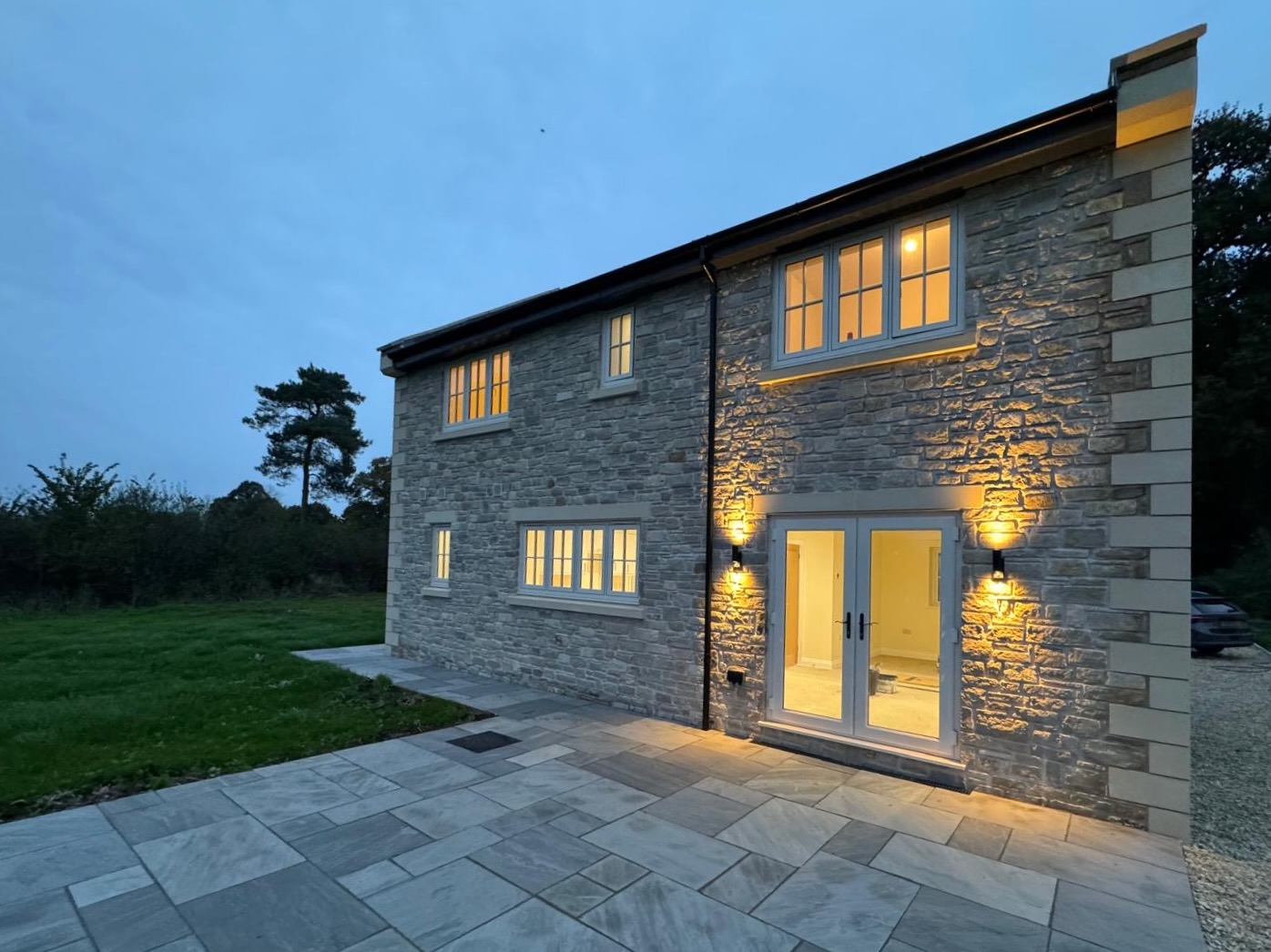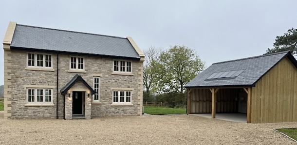 The four-bedroom detached house sits just outside the local conservation area but has been designed to fit with the character of the village of Trent, near Yeovil, and is faced in local stone with raised parapets.