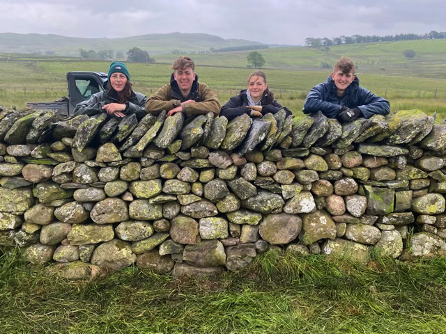Apprentices learning dry stone walling at Low Beckside Farm in Cumbria