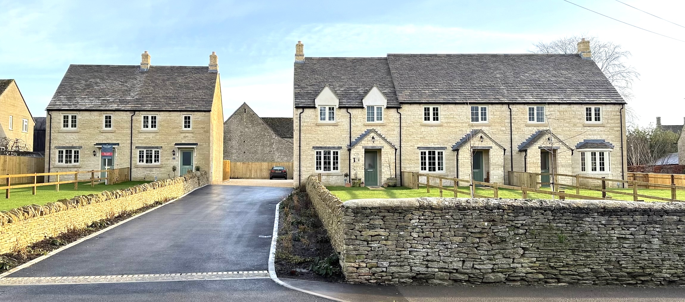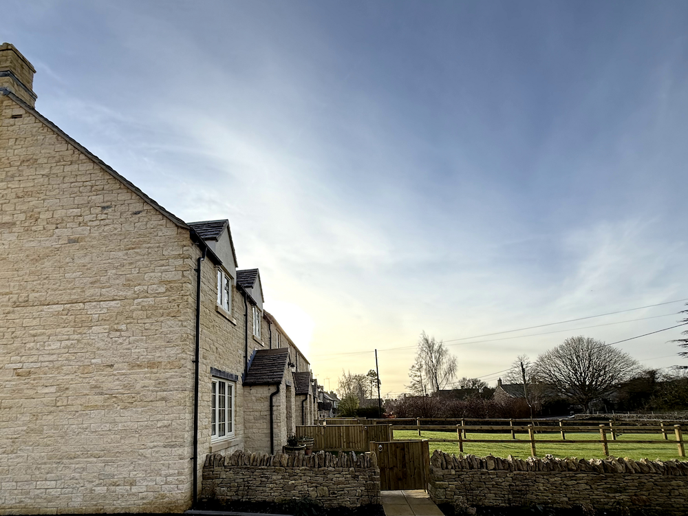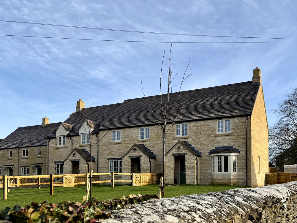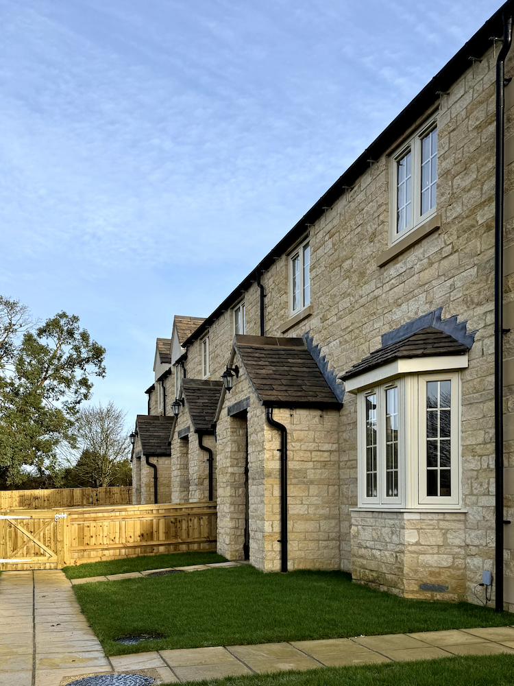 The five two- and three-bedroom homes at Fiennes Court, Waiten Hill, Fairford, were designed in the style of existing Cotswold buildings and faced with natural stone.