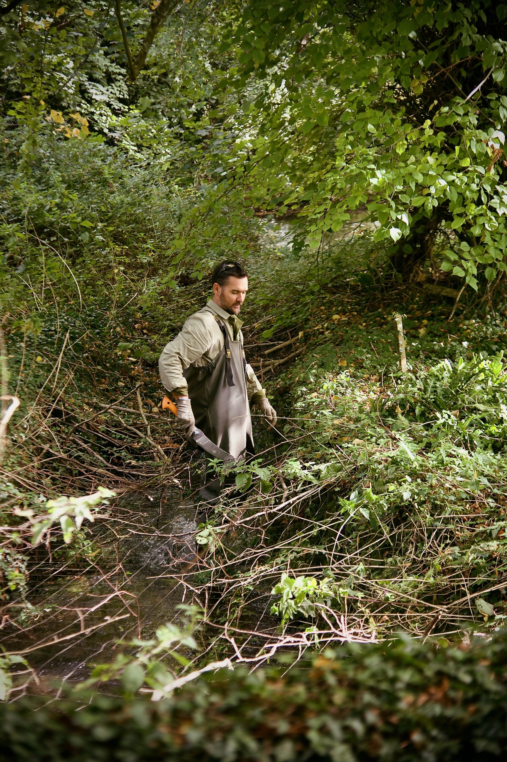 River Keeper, Mark Cameron removing predator nets, River Coln (September 2025)